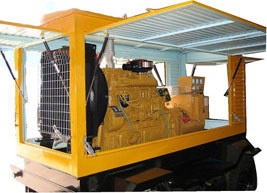 获嘉柴油发电机组/移动柴油发电机组设计独具创新,机动性高、重心低、制动安全、制造精良、外形美观。 获嘉拖车车架采用槽梁焊接成框架结构,节点选择合理、强度高、刚性好;同时装有钢板弹簧悬架结构;拖车采用高度可调节插销式牵引架,适用于各种高度牵引车;采用圆形钢管焊接直通式车轴,结构紧凑,安全可靠;车架四角设有机械式支撑装置,配备惯性行车制动、驻车制动和脱离应急制动,确保机组在各种状况下的安全;车架前端设有支撑轮,具备承受机组垂直载荷的功能的同时还具备导向功能;整车配备转向和刹车指示灯,同时装有尾灯标准插头